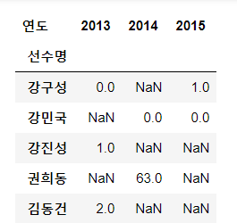 그 다음 선수명을 인덱스로 변경한다.