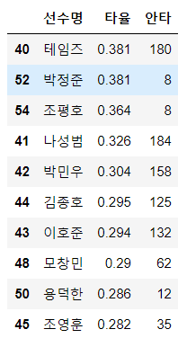 t1[['선수명','타율','안타']]