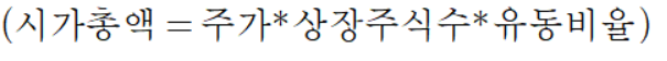 # 유동비율을 반영한 시가총액 = 주가 * 상장주식 수 * 유동비율