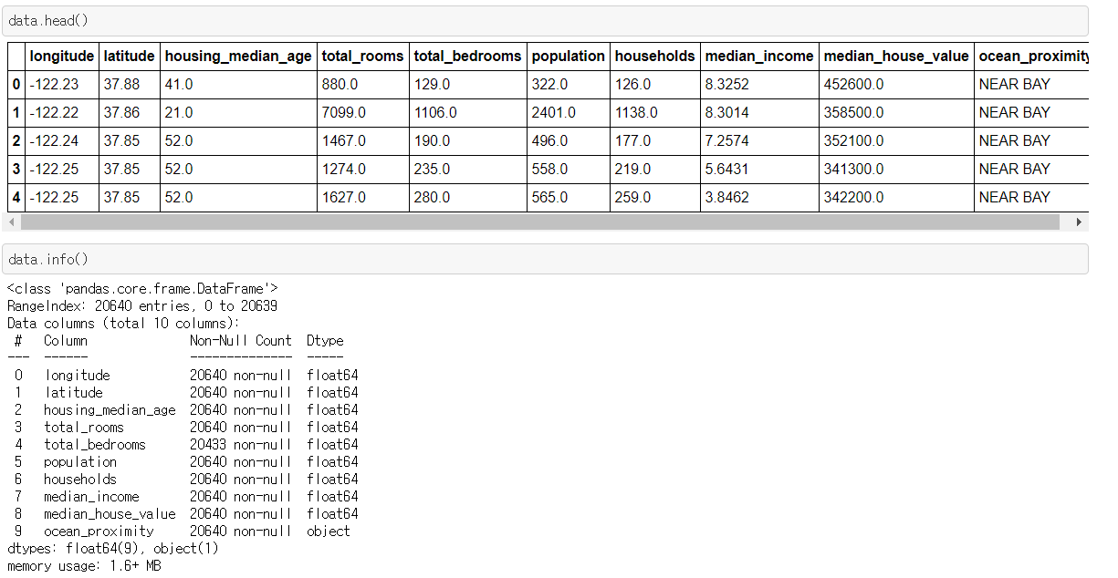 ocean_proximity 만 문자형 변수