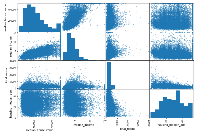 scatter_matrix(housing[attributes],figsize=(12,8))