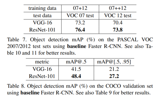 Classification 뿐만 아니라 Detection에서도 좋은 성능을 보여 COCO dataset에서 VGG보다 무려 6%p 높은 성능을 발휘하였다.