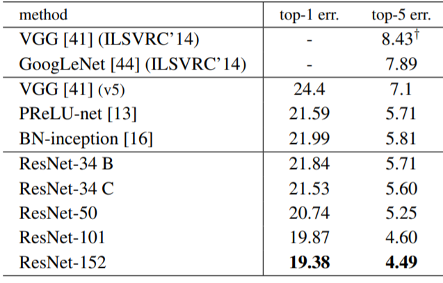 따라서 ResNet의 아이디어 shortcut connection의 효과로 층이 깊어질수록 더 좋은 성능을 낸다는 것을 증명하였다.