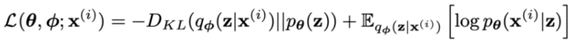 KLD는 수학계산이 가능하므로 variance를 줄일 수 있다. 그래서 이는 Regularization역할이 가능하다. 그리고 기대값 E는 Reconstruction error라고 불리우며 자기 자신을 얼마나 잘 복원시켰는지 측정하는 역할을 한다.