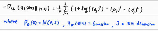 p(z)는 평균이 0인 분포를 따르고 q는 가우시안 분포를 따른다. J 는 z의 차원이다.