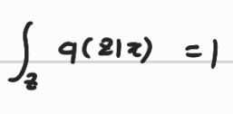 -> 전체 확률 분포에 대해서 적분하면 1이다.