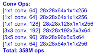 - 3x3 filter 192개 적용했을 때 : 28x28x192 -> parameter 연산 : 28x28x192x3x3x256