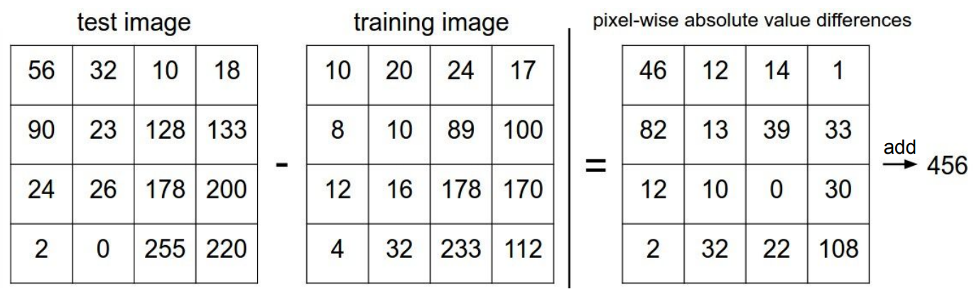 Nearest Neigbor 알고리즘은 어떻게 유사도를 판단할까? 이는 L1 Distance를 통해 할 수 있다.