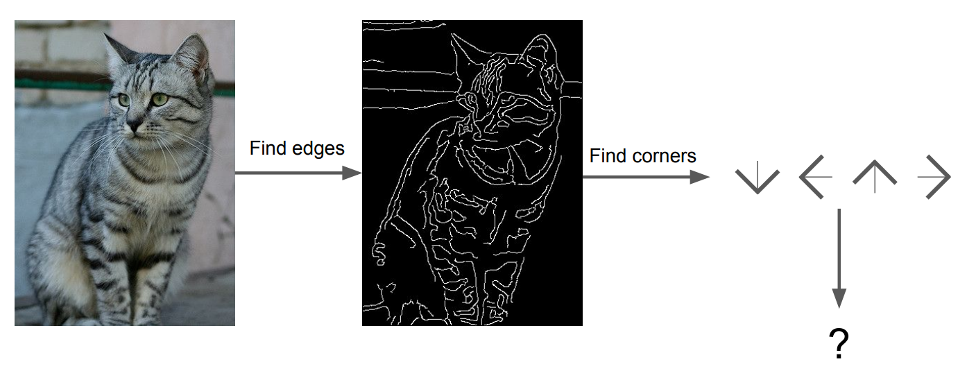 과거엔 Image classification을 하기 위해 여러 방법을 시도하였는데 그 중 하나가 이미지의 특징점(Corner, Edge)를 찾고 이러한 배열이 어떻게 구성되어 있는가를 찾아낸다. 그리고 이를 통해서 Classification을 하려는 시도가 있었다.