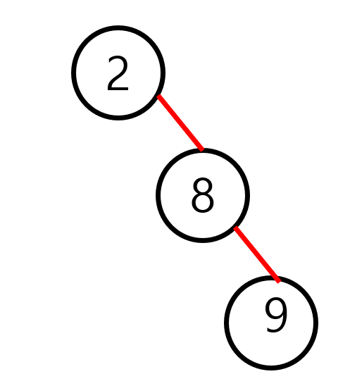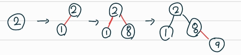 예를 들어 보자. [2,1,8,9] 가 차례대로 들어온다고 가정하자. 다음과 같은 과정을 거치게 된다.