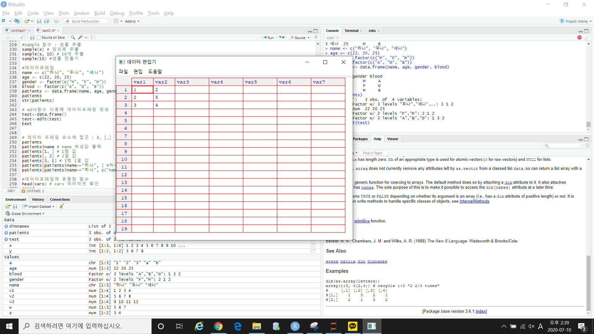 python pandas 모듈의 꽃인 dataframe 형식을 R로 구현해보겠다.