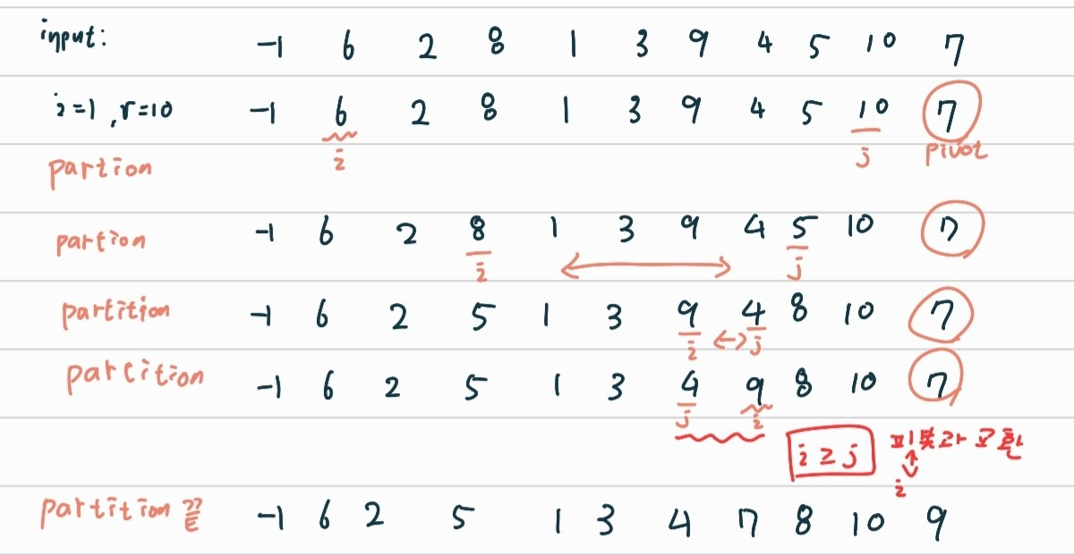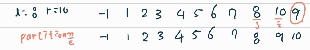 i <- partition(a[],l,r); // i는 파티션이 끝난 뒤 사용되는 피봇의 인덱스