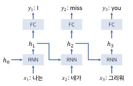 위 그림은 (나는 - I), (네가 - miss) (그리워 - you) 이런 식으로 각각 단어가 매핑되게 하는 것이다.