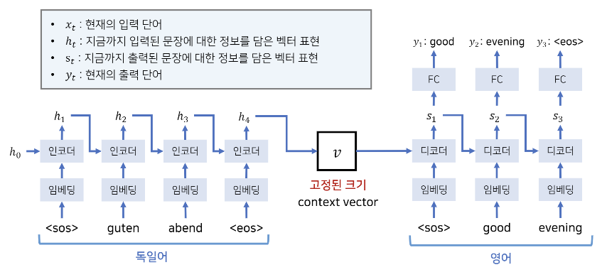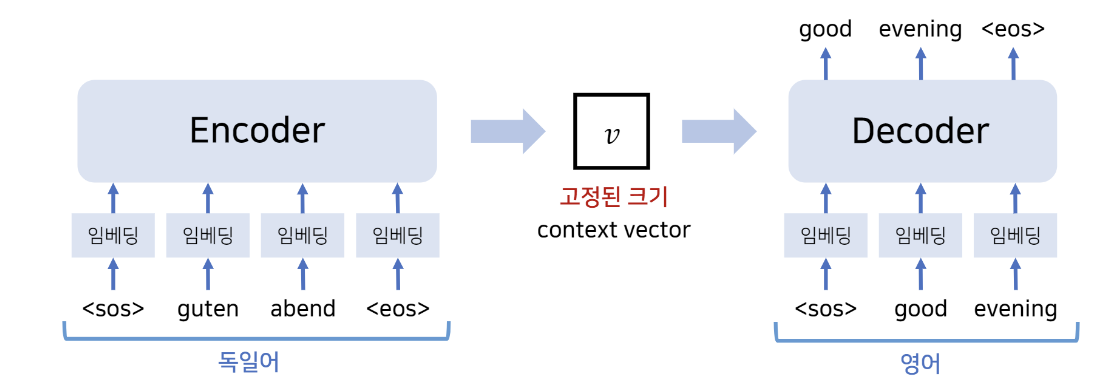 - RNN의 단점을 해결하기 위해 Encoder가 고정된 크기의 context vector를 추출