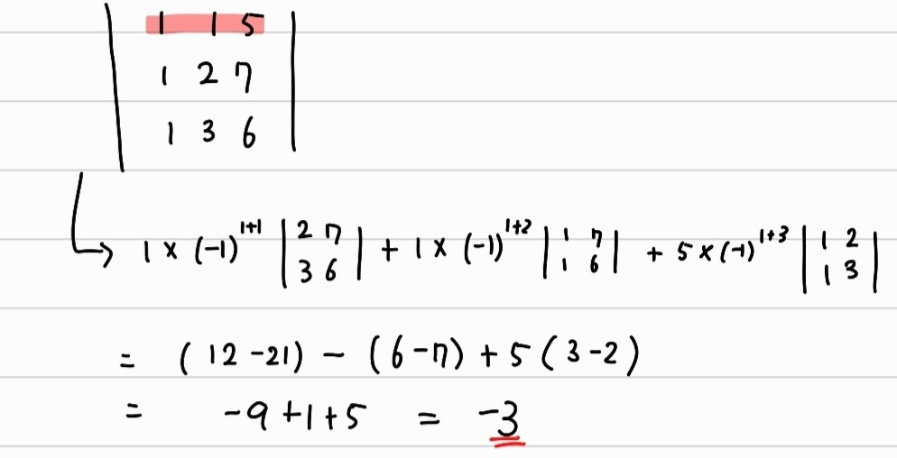 지금부터 계산하는 방식은 여인수 전개(Laplace 전개)의 방식으로 전개하는 것이다.