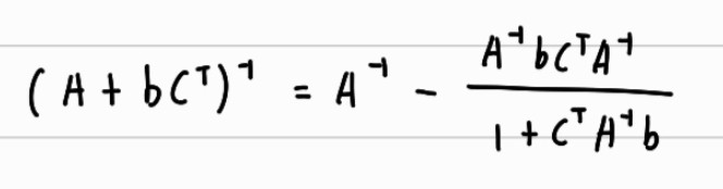그리고 이를 전개하고, 이 과정에서 \( c^{T}A^{-1}b \) 는 스칼라값이므로 이를 이용하여 풀이를 이어나간다.