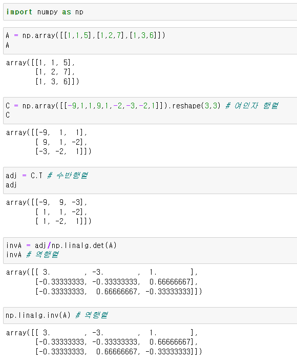 이러한 역행렬을 파이썬 코드로 확인해보자