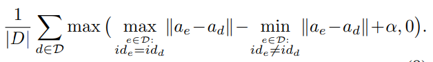 이는 같은 아이디를 가질 때 두 벡터의 거리의 최대값 - 다른 아이디일 때 두 벡터의 거리 최솟값 + \( \alpha \)의 최대값의 summation 의미