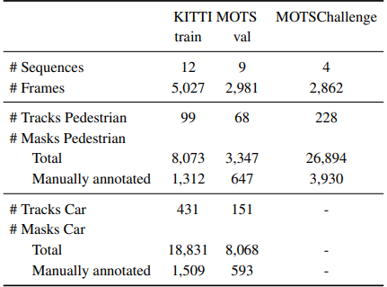 - 새로운 두가지 데이터셋을 만듦: Tracking 정보와 Segmentation 정보가 포함된 KITTI와 MOTChallenge Dataset.