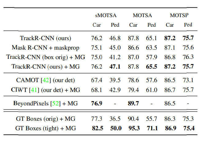 - 새로운 평가지표 제안 : sMOTA(soft multi object Tracking and Sengmentation). -> 새로운 task에 대해 모두 평가할 수 있는 지표