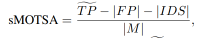 - sMOTSA (soft Multi Object Tracking and Segmenation Accuracy)
