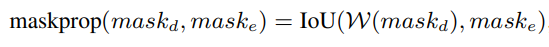 여기서 W 함수는 Warping 함수 말함. 즉, \( mask_d \) 에 대해서 t-1 과 t frame의 optical flow를 의미.