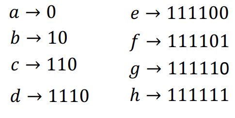 8개의 가능한 bit는 \( \{ a,b,c,d,e,f,g,h \} \) 라고 하자. 그리고 이에 대한 각각의 확률은