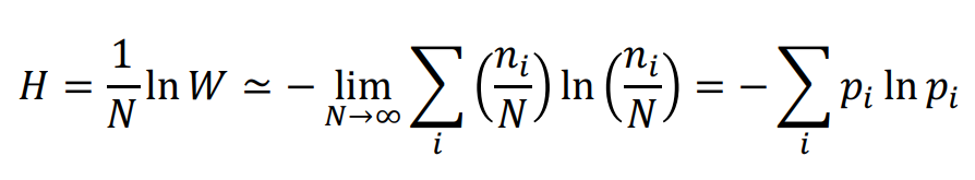 Entropy의 식을 보면 다양성과 연관이 있음을 알 수 있다. Entropy H는 다양성에 log를 취해준 것과 동일하다.