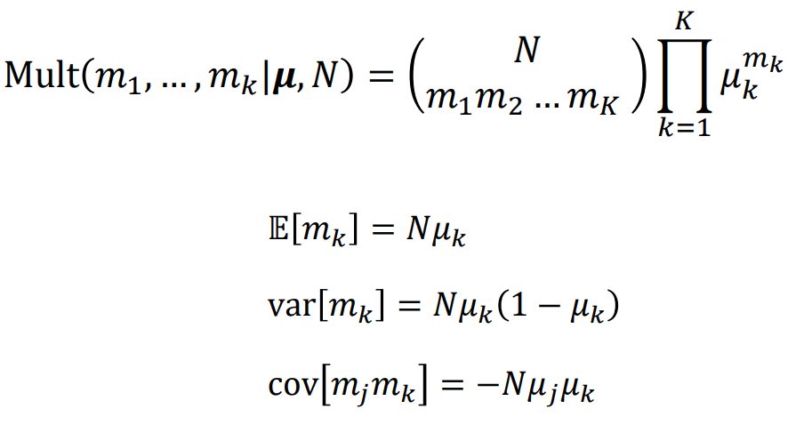 여기서 \( m_k \) 는 k 번째 state가 몇번 나오는지에 대한 값이다. 즉, k=6 인 주사위라고 했을 때, 주사위를 던져서 특정한 숫자가 몇번 나오는지에 대한 횟수라고 생각하면 된다.