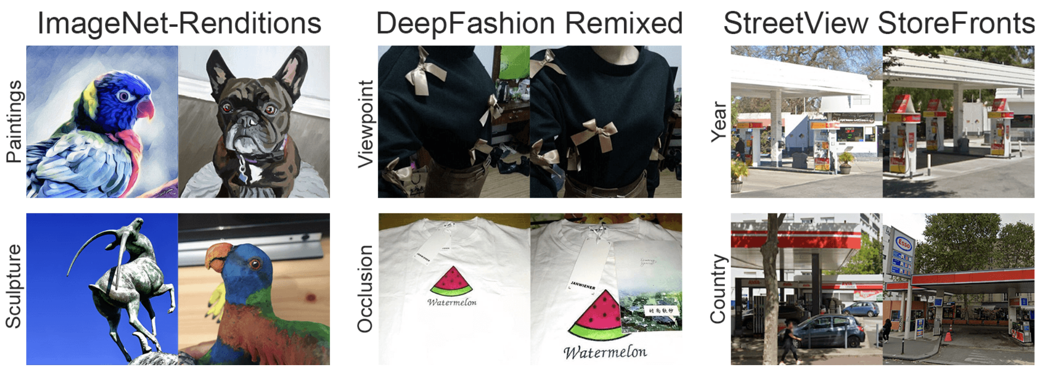 다음으로 본 논문에선 StreetView StoreFornts(STSF)와 DeepFashion Remixed로 이미지 capture process의 효과 변화를 조사한다 SVSF 와 DFR 은 모두 distribution shift control을 제공하며 texture 를 변경하지 않아 이전 benchmark에 영향을 미칠 수 있는 가능한 confounding variable를 제거한다.
