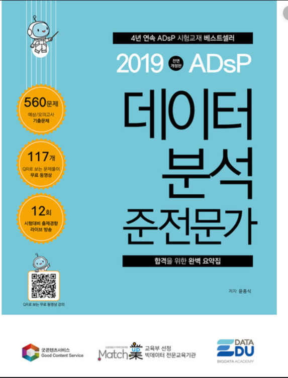 위와 같이 소개한 두 책을 마스터 한다면 ADsP 시험은 무난하게 통과할 뿐만 아니라 고득점이 가능하다.
