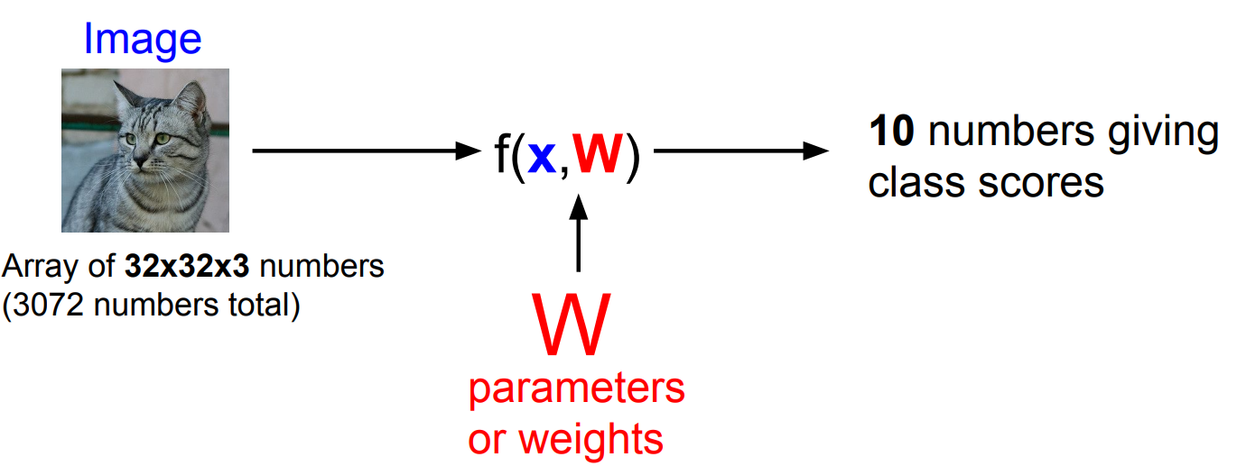 Linear Classification은 Parameteric Approach를 취하고 있다. 앞서 설명한 NN과 KNN은 parameter를 사용하지 않는데 Linear Classfication 부턴 Parameter를 기반으로 접근하는 방식이다.