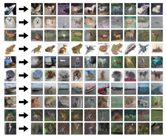 맨 왼쪽열에 있는 것이 Test Image이고 화살표 다음에 맨 처음에 나온 이미지들이 가장 비슷한 이미지들이다.